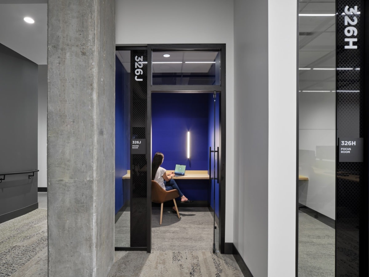 總部擁有超過650人的團(tuán)隊(duì),可滿足不同的工作方式、任務(wù)和需求,無縫集成協(xié)作區(qū)域和專用區(qū)域,以實(shí)現(xiàn)專注工作。該空間設(shè)有寬敞的培訓(xùn)室,優(yōu)先考慮靈活性和適應(yīng)性。為了擴(kuò)大公司的高能量和雄心勃勃的文化,我們戰(zhàn)略性地在整個(gè)辦公室設(shè)計(jì)了咖啡館,每個(gè)咖啡館都提供不同風(fēng)格的座位和氛圍。這些區(qū)域允許員工選擇最適合他們當(dāng)前需求和偏好的氛圍。此外,我們?cè)诠ぷ髡靖浇胖昧宋恢帽憷拇蛴『涂Х日?,以確保易于訪問。其結(jié)果是一個(gè)散發(fā)出大膽、敏銳的能量和強(qiáng)度的工作場(chǎng)所,這些都定義了DMG努力工作、努力工作的態(tài)度。