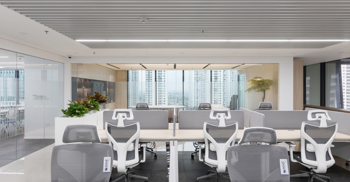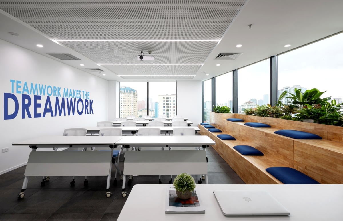 案例說明:設(shè)計(jì)的該辦公室,以培養(yǎng)商業(yè)價(jià)值觀,保持領(lǐng)導(dǎo)者和文化的精神。進(jìn)入入口后,一個(gè)氛圍舒緩的接待休息室取代了傳統(tǒng)的接待區(qū),為客人和員工提供了非凡的體驗(yàn),并營造出一種放松和熱情的感覺。自助餐廳區(qū)設(shè)有大量落地窗,日光充足,可欣賞河內(nèi)喧囂的廣闊景色。為了最大限度地利用座位區(qū),設(shè)計(jì)了一張實(shí)木柜臺(tái)高度的酒吧桌,與小型可移動(dòng)餐桌一起環(huán)繞著空間。