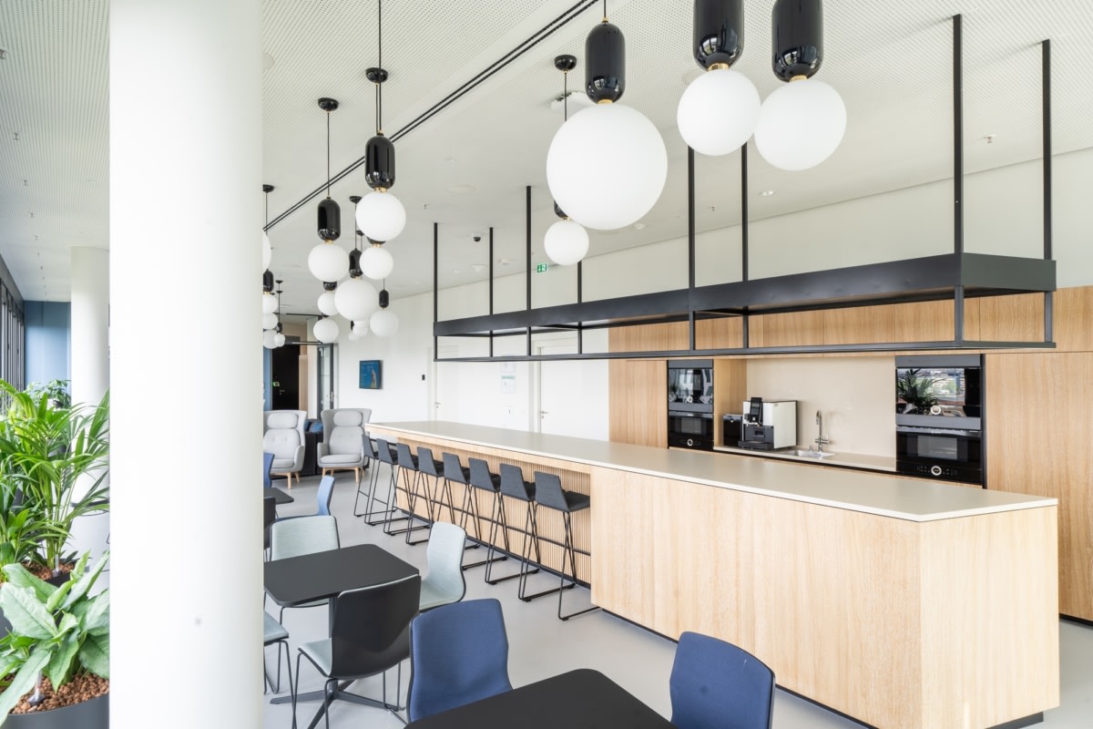 一家國際生物技術集團委托設計公司設計和規(guī)劃其總部的內(nèi)部設計。任務是創(chuàng)建一個新的代表處,以集團的價值觀及其工作場所文化為指導原則。作為更廣泛的變更管理流程的一部分,設計公司的團隊與員工合作,為空間制定了一個非常適合其工作流程和個人需求的概念。我們以集團在全球其他地點已經(jīng)體現(xiàn)的企業(yè)文化為基礎,將現(xiàn)有物業(yè)中的一人間和兩人辦公室改造成一個開放式、交流的工作場所,巧妙地將共享空間與休閑空間相結合,以實現(xiàn)充滿活力的互動,以及用于深度集中精力工作的休閑空間。